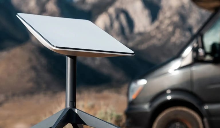 Alquiler de antena starlink y todos los accesorios necesarios para tu viaje.